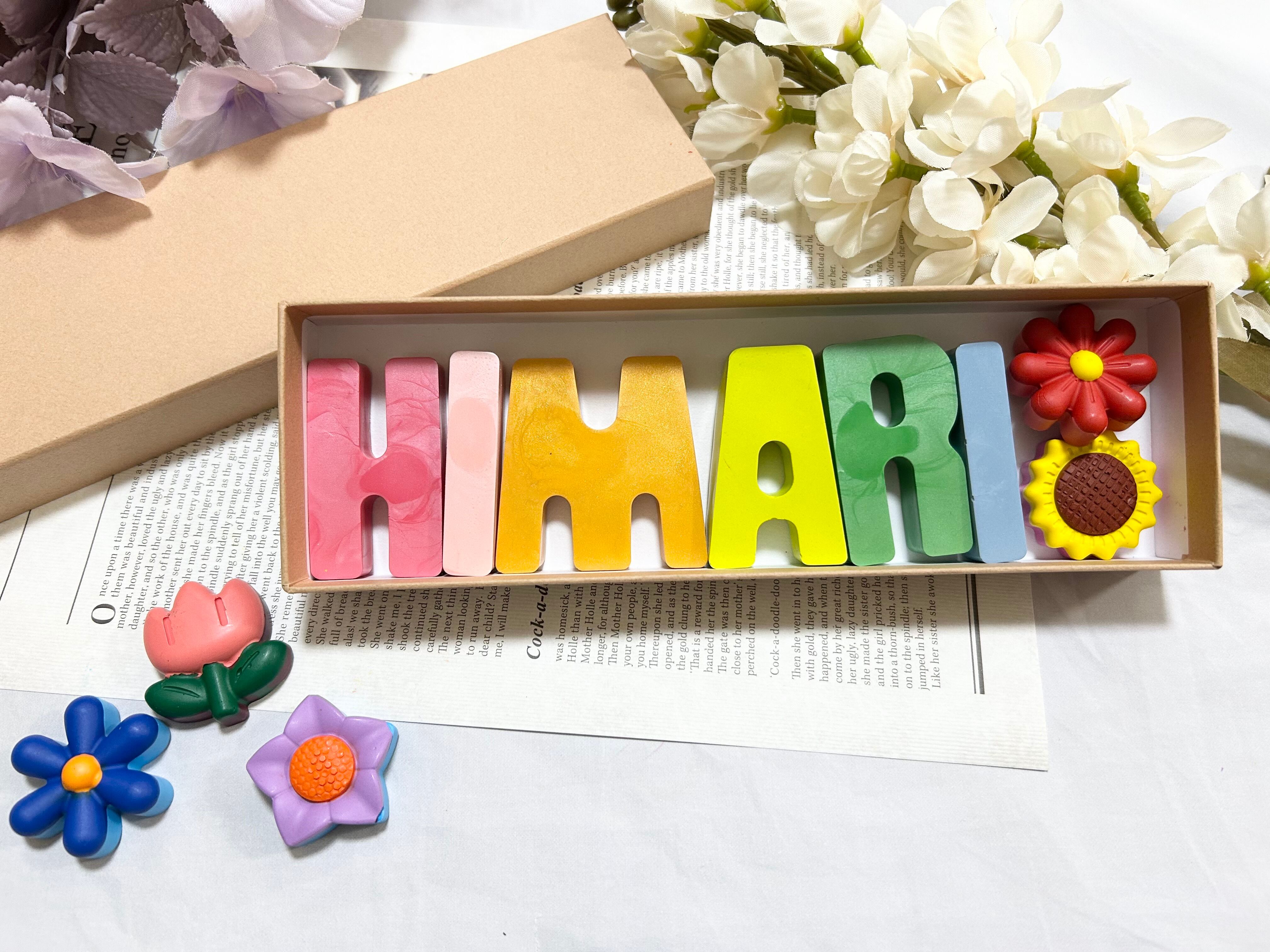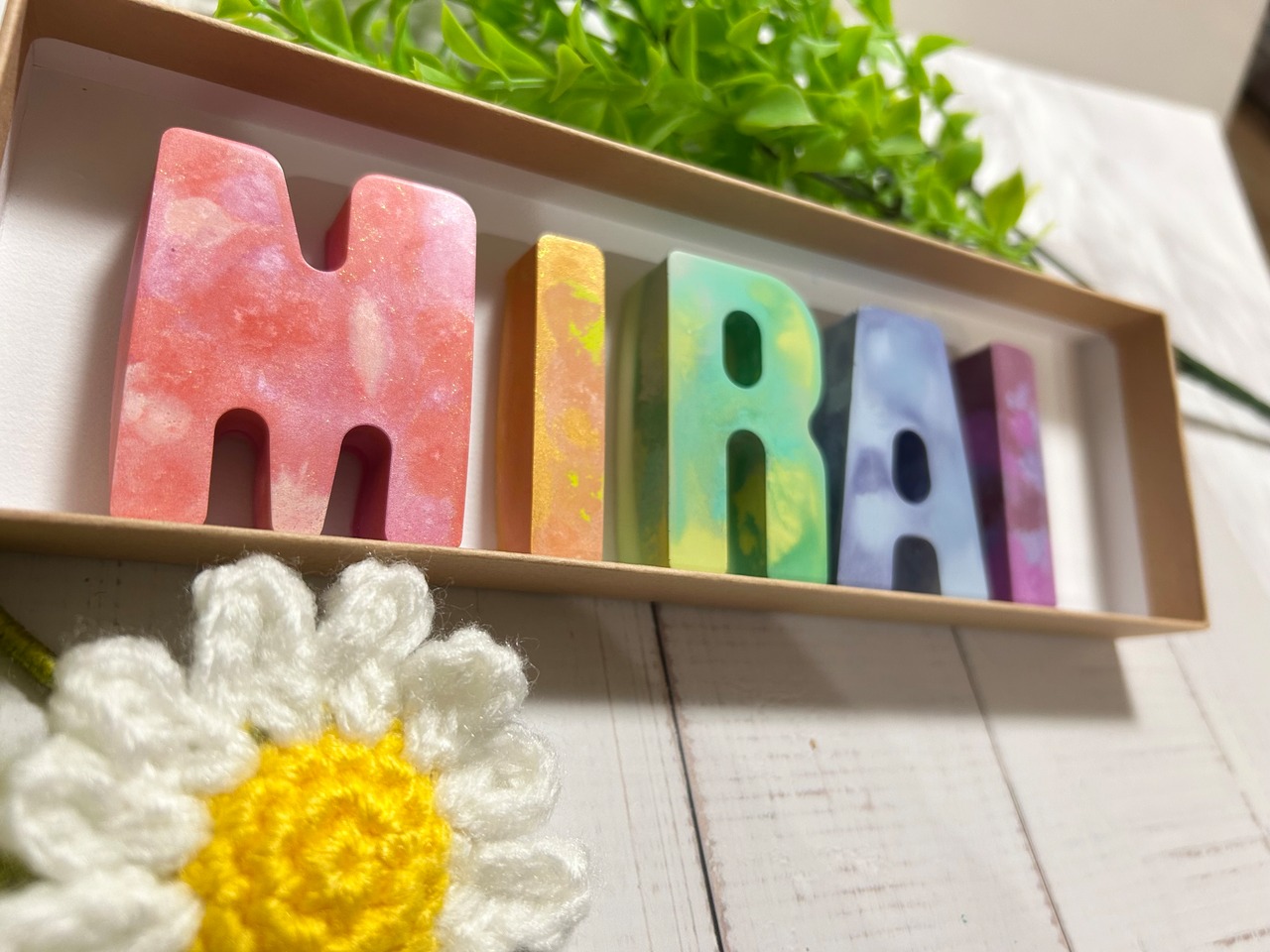 出産祝い・誕生日・入園祝いにぴったり!お子さまの名前を、カラフルで可愛いクレヨンにしてお届けします★