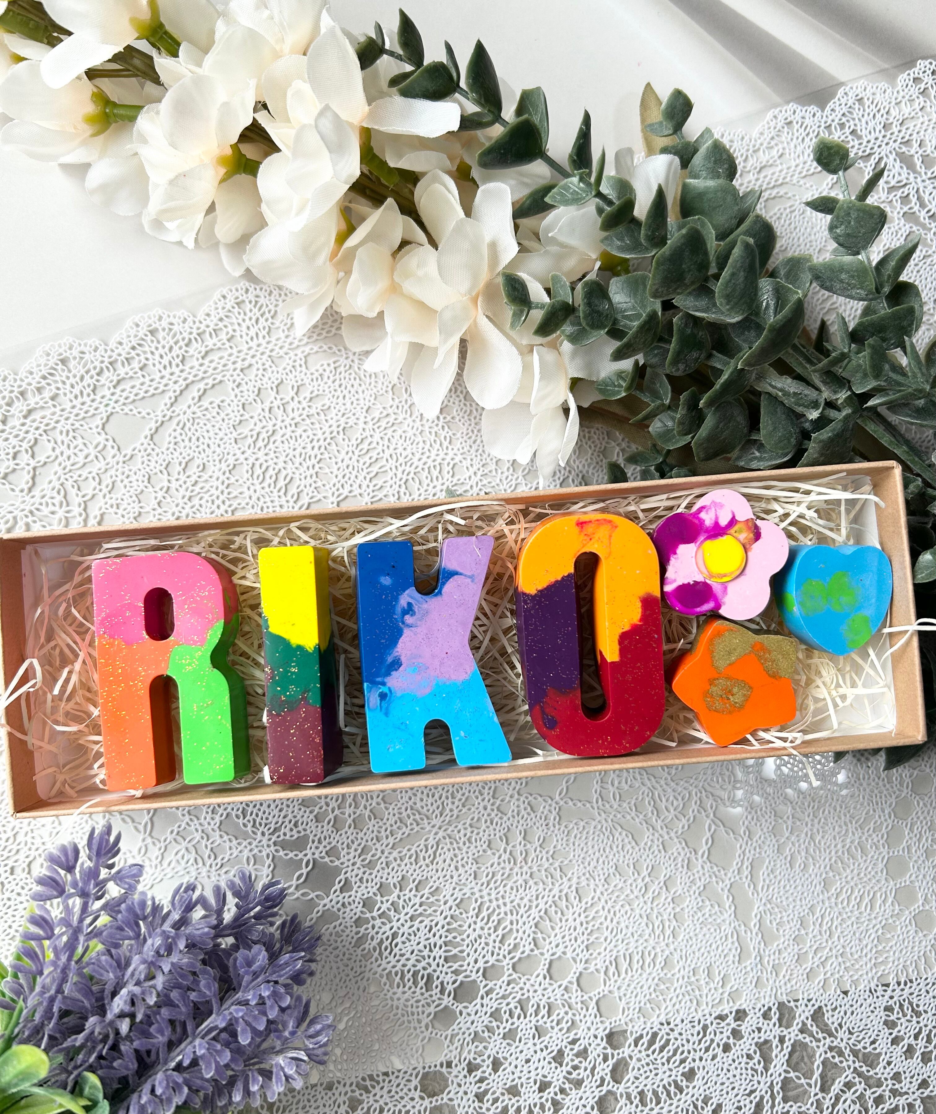 出産祝い・誕生日・入園祝いにぴったり!お子さまの名前を、カラフルで可愛いクレヨンにしてお届けします★